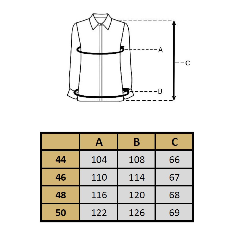 Produkty mierzymy na płasko, po zewnętrznej stronie, zapięte na guziki (zamek).  Aby wybrać najodpowiedniejszy rozmiar zmierz podobne ubranie ze swojej szafy i porównaj jego wymiary z tabelą rozmiarów danego produktu. Wymiary podane w tabeli mogą różnić się od wymiarów rzeczywistych produktu +/- 2cm.