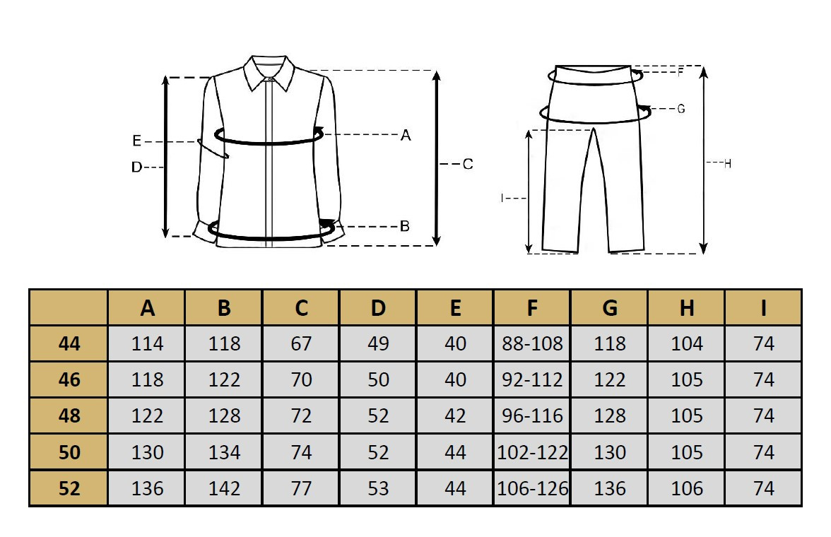 Produkty mierzymy na płasko, po zewnętrznej stronie, zapięte na guziki (zamek).  Aby wybrać najodpowiedniejszy rozmiar zmierz podobne ubranie ze swojej szafy i porównaj jego wymiary z tabelą rozmiarów danego produktu. Wymiary podane w tabeli mogą różnić się od wymiarów rzeczywistych produktu +/- 2cm. Modelka na zdjęciu ma 164 cm wzrostu i nosi rozmiar 44.