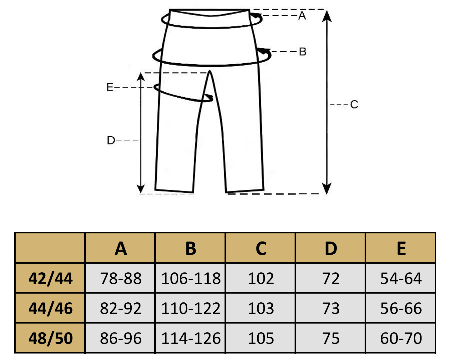 Produkty mierzymy na płasko, po zewnętrznej stronie, zapięte na guziki (zamek).  Aby wybrać najodpowiedniejszy rozmiar zmierz podobne ubranie ze swojej szafy i porównaj jego wymiary z tabelą rozmiarów danego produktu. Wymiary podane w tabeli mogą różnić się od wymiarów rzeczywistych produktu +/- 2cm. Modelka na zdjęciu ma 164 cm wzrostu i nosi rozmiar 42/44.