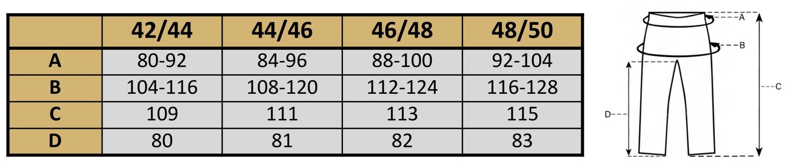 A – Obwód w pasie ( zakres przy rozciągnięciu gumy)