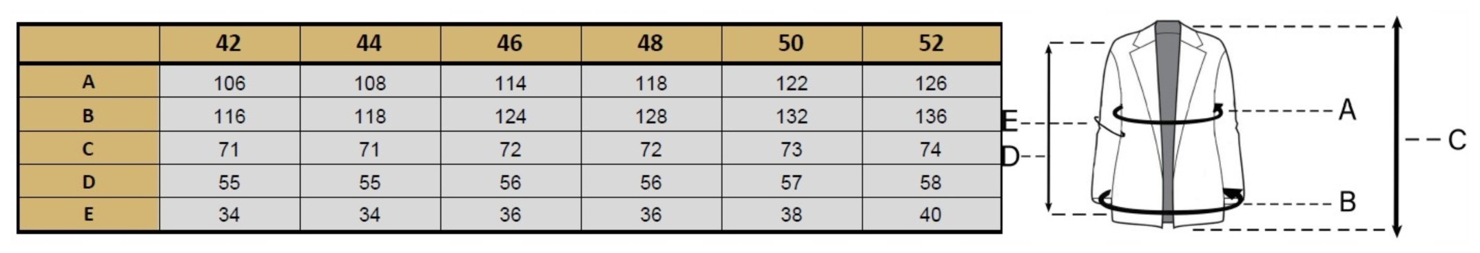 Produkty mierzymy na płasko, po zewnętrznej stronie, zapięte na guziki (zamek).  Aby wybrać najodpowiedniejszy rozmiar zmierz podobne ubranie ze swojej szafy i porównaj jego wymiary z tabelą rozmiarów danego produktu. Wymiary podane w tabeli mogą różnić się od wymiarów rzeczywistych produktu +/- 2cm. Modelka na zdjęciu ma 164 cm wzrostu i nosi rozmiar 42.