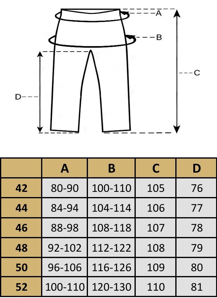 Produkty mierzymy na płasko, po zewnętrznej stronie, zapięte na guziki (zamek). Wymiary podane w tabeli mogą różnić się od wymiarów rzeczywistych produktu +/- 2cm. Modelka na zdjęciu ma 164 cm wzrostu i nosi rozmiar 42.