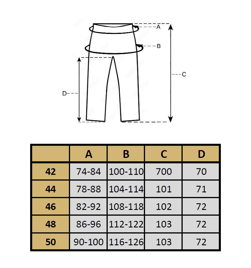 Produkty mierzymy na płasko, po zewnętrznej stronie, zapięte na guziki (zamek). Wymiary podane w tabeli mogą różnić się od wymiarów rzeczywistych produktu +/- 2cm. Modelka na zdjęciu ma 164 cm wzrostu i nosi rozmiar 42.